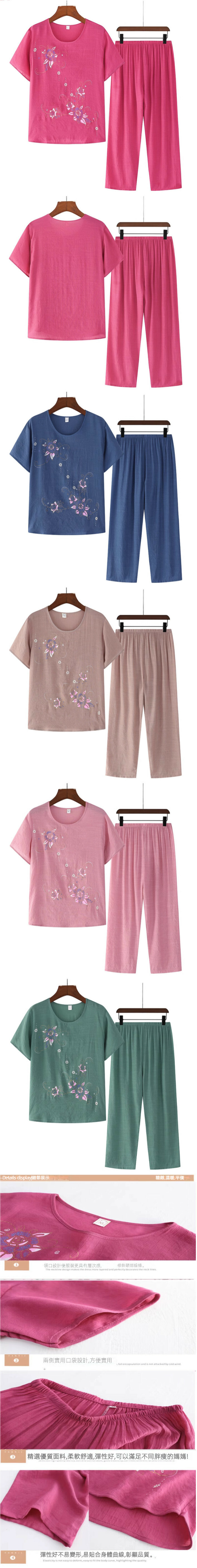 新款夏季中老年棉麻套裝(藍色)【尺碼:XL-4XL】【下單後聯絡客服確認發貨尺碼】