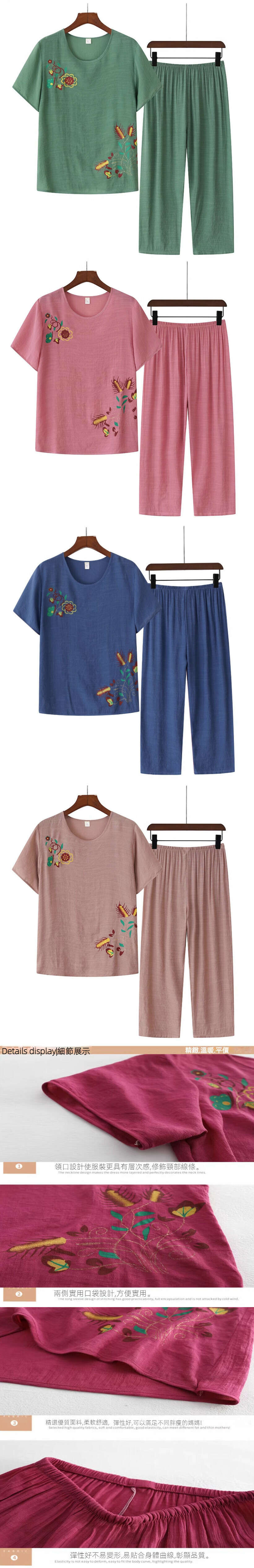 新款夏季中老年棉麻套裝(盤扣款粉色)【尺碼:XL-4XL】【下單後聯絡客服確認發貨尺碼】