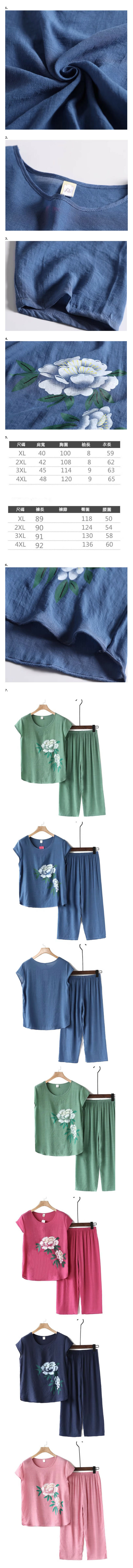 熱賣夏季中老年棉麻套裝(刺繡套裝-粉色)【尺碼:XL-4XL】【下單後聯絡客服確認發貨尺碼