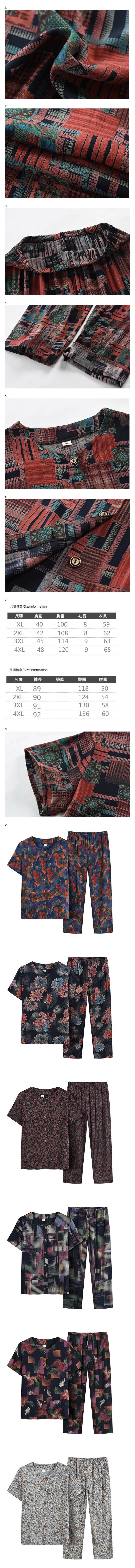 激抵夏季中老年棉綢睡衣套裝(藍色楓葉)【尺碼:XL-4XL】【下單後聯絡客服確認發貨尺碼】