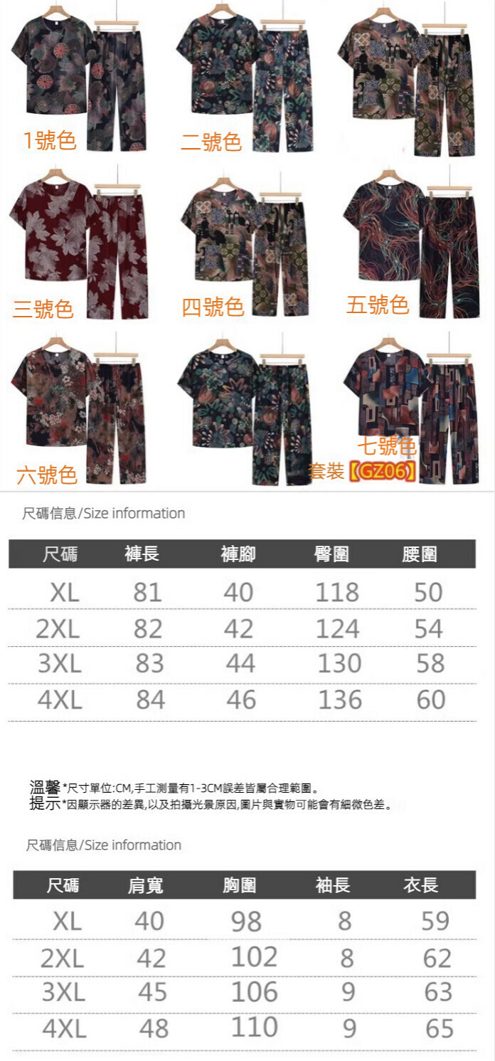 爆款夏季中老年棉綢睡衣套裝(4號色)【尺碼:XL-4XL】【下單後聯絡客服確認發貨尺碼】