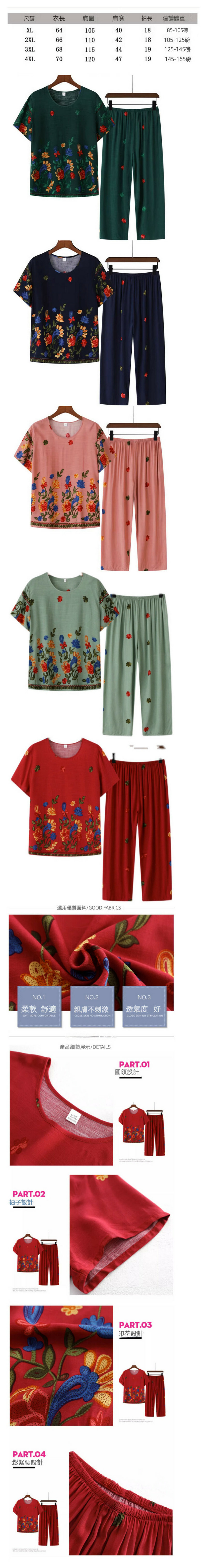 熱賣夏季中老年綿綢休閒套裝(粉色)【尺碼:XL-5XL】【下單後聯絡客服確認發貨尺碼】
