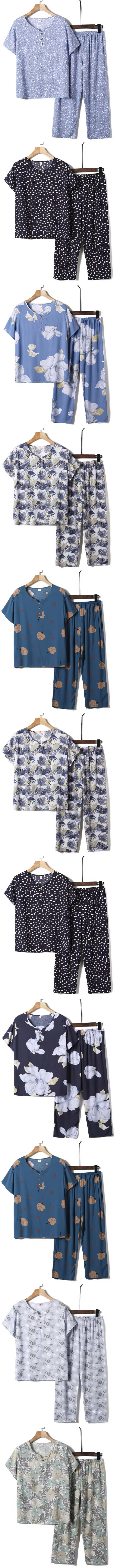 新款夏季中老年綿綢套裝(淺藍大花)【尺碼:XL-4XL】【下單後聯絡客服確認發貨尺碼】