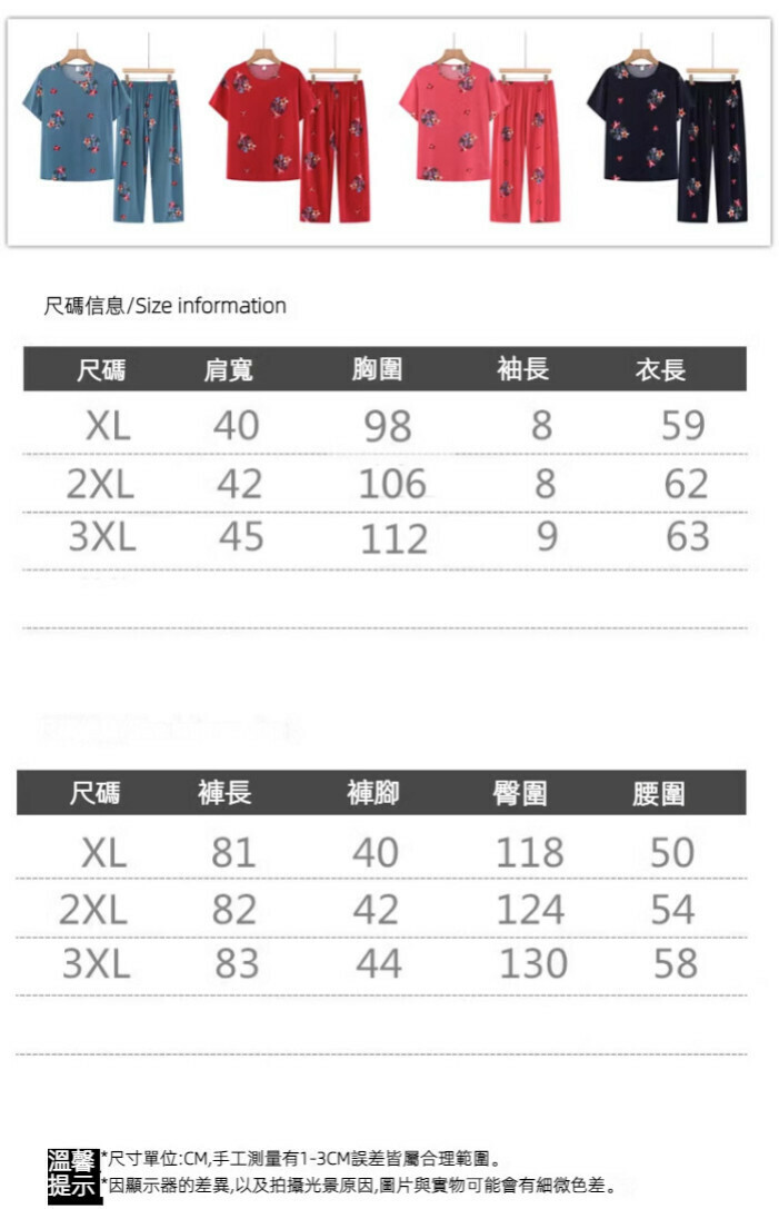 熱推夏季中老年睡衣套裝(棗紅色)【尺碼:XL-3XL】【下單後聯絡客服確認發貨尺碼】
