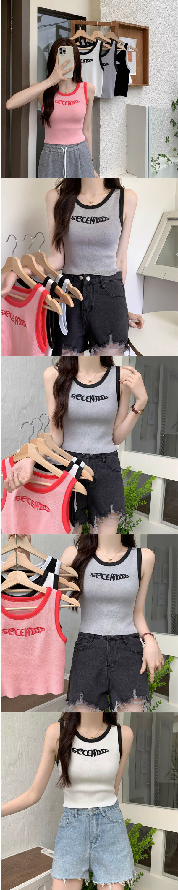 爆款夏季字母刺繡背心(灰色 )【均碼】