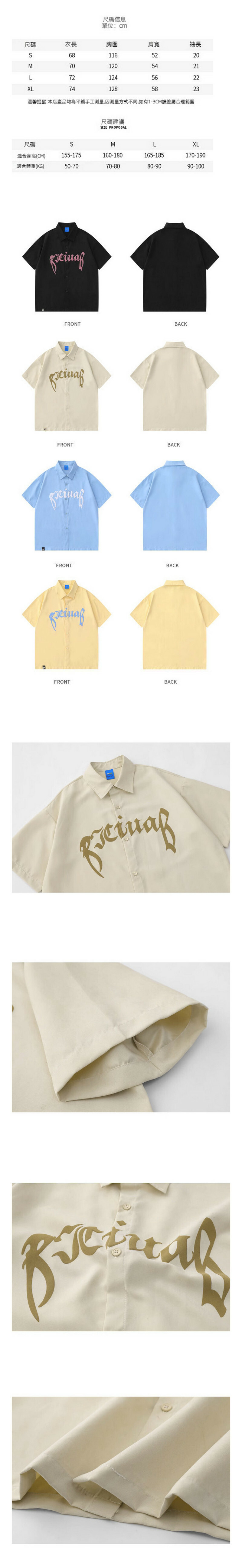 爆款夏季復古字母印花短袖襯衫(藍色)【S-XL碼】【下單後聯絡客服確認發貨尺碼】