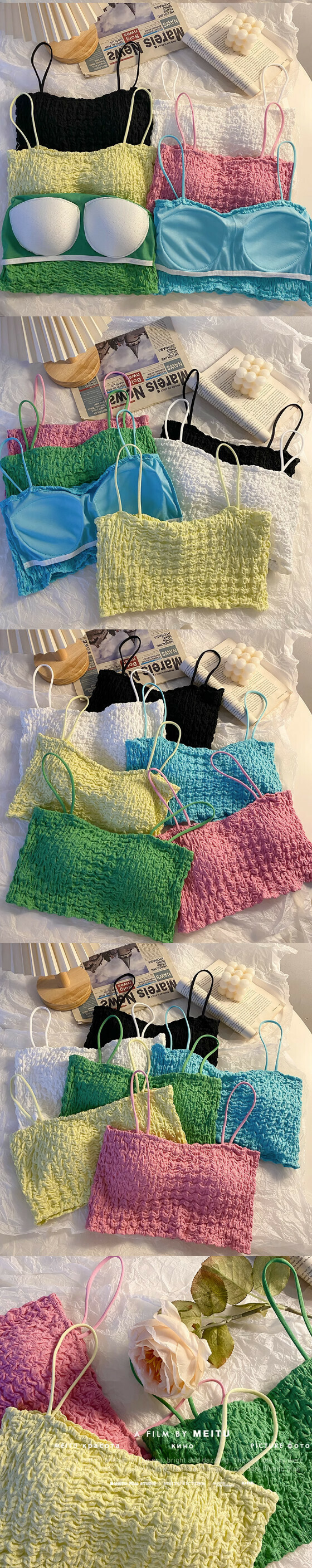 熱賣夏季短款帶胸墊一體背心(藍色)【尺碼:S-L】【下單後聯絡客服確認發貨尺碼】