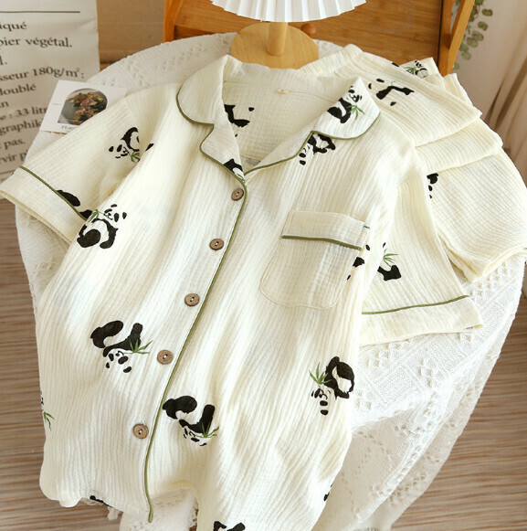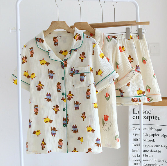 熱賣夏季短袖短褲開衫睡衣套裝(LJ運動小熊-縐布翻領)【M-XL碼】【下單後聯絡客服確認發貨尺碼】