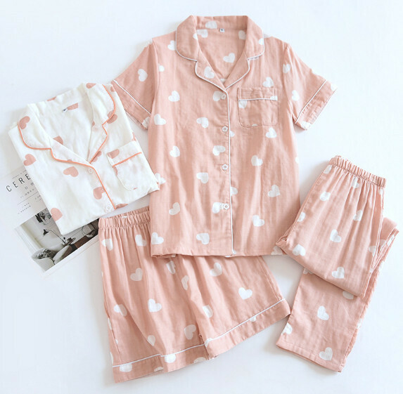 熱賣夏季短袖長褲短棉紗睡衣三件套(ZHY藍色大耳朵狗)【M-XL碼】【下單後聯絡客服確認發貨尺碼】