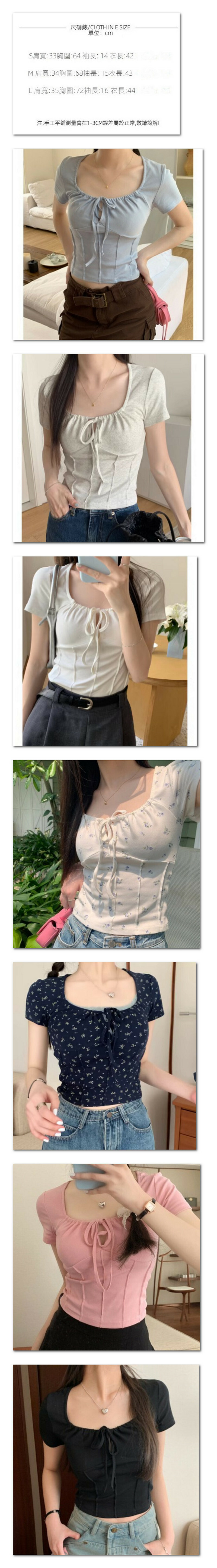 夏季短款方領短袖t卹(白色碎花)【尺碼:S-L】【下單後聯絡客服確認發貨尺碼】