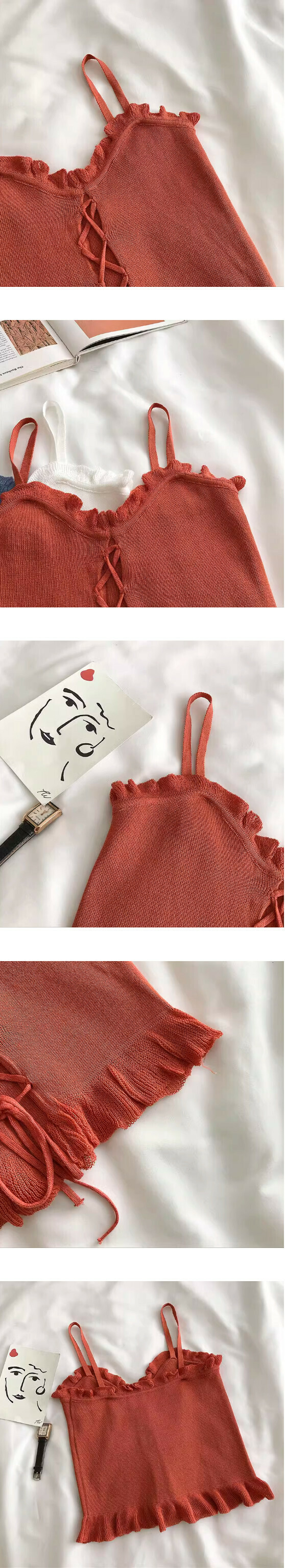 激抵夏季顯瘦抽繩木耳邊背心(紅色)【均碼】