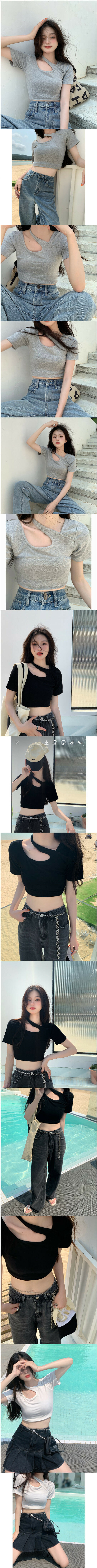 夏季修身鏤空正肩短袖t卹(灰色)【尺碼:S-L】【下單後聯絡客服確認發貨尺碼】