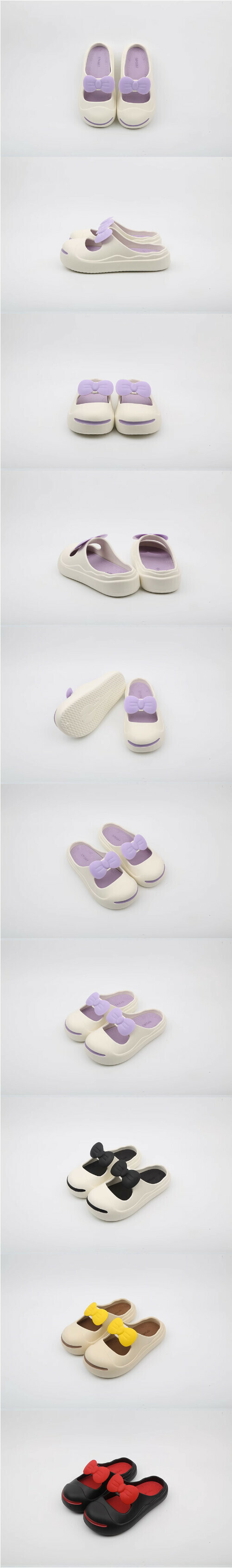 激抵夏季開口笑包頭半拖鞋(8065-1 白紫蝴蝶結)【36-41碼】【下單後聯絡客服確認發貨尺碼】】