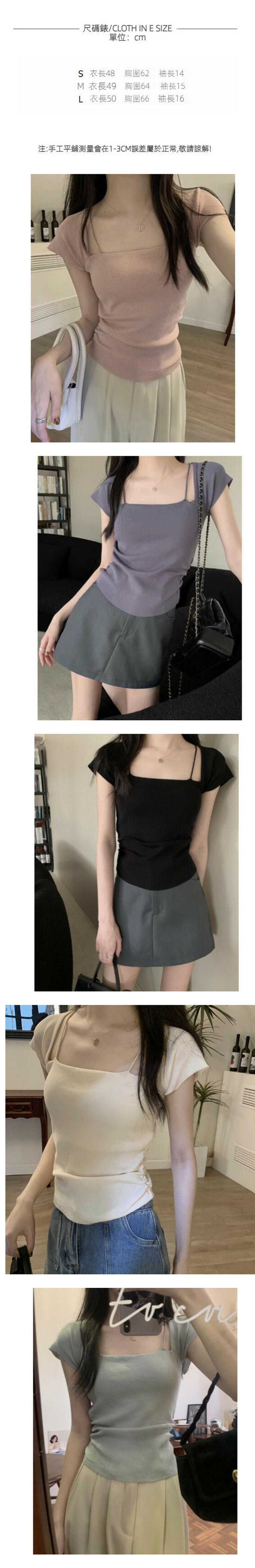 夏季方領冰絲短袖T卹(黑色)【尺碼:S-L】【下單後聯絡客服確認發貨尺碼】
