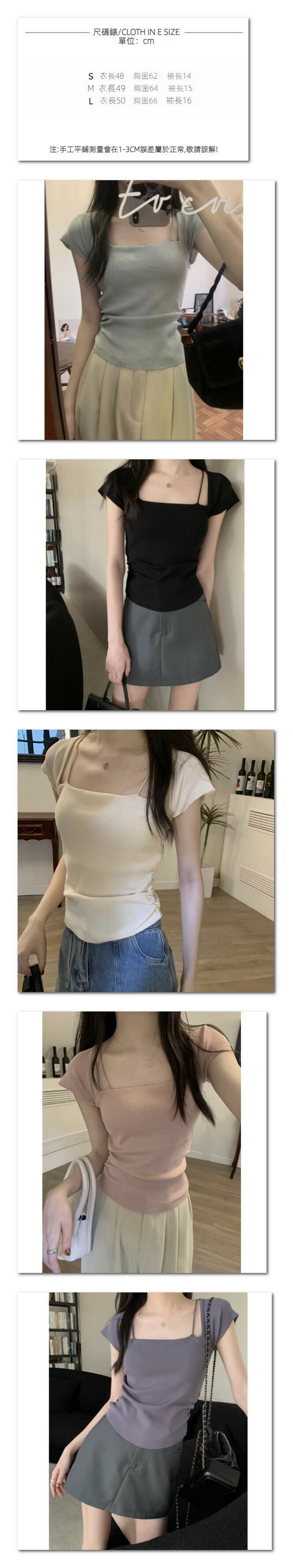 夏季方領冰絲短袖T卹(灰色)【尺碼:S-L】【下單後聯絡客服確認發貨尺碼】