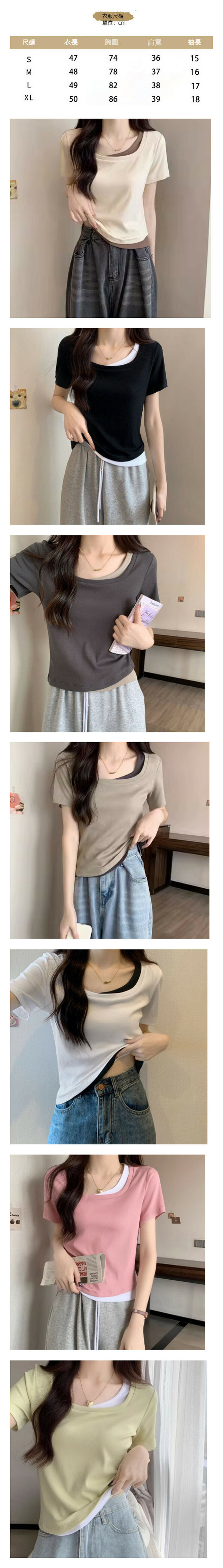 夏季拼接撞色短袖t卹(杏色)【尺碼:S-XL】【下單後聯絡客服確認發貨尺碼】