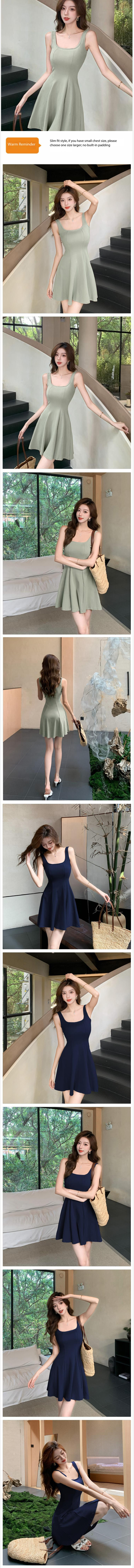 夏季氣質A字短裙小香風方領吊帶連衣裙