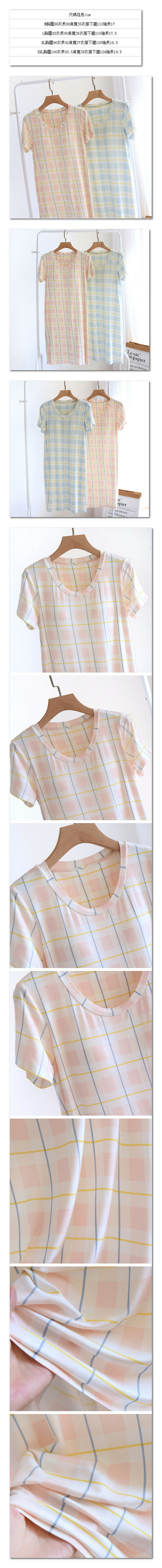 熱賣夏季薄款莫代爾帶胸墊睡裙(LZQ淺藍色格子)【M-XXL碼】【下單後聯絡客服確認發貨尺碼】