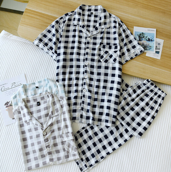 激抵夏季薄款格子睡衣褲套裝(HLL男款藍方格)【M-XL碼】【下單後聯絡客服確認發貨尺碼】
