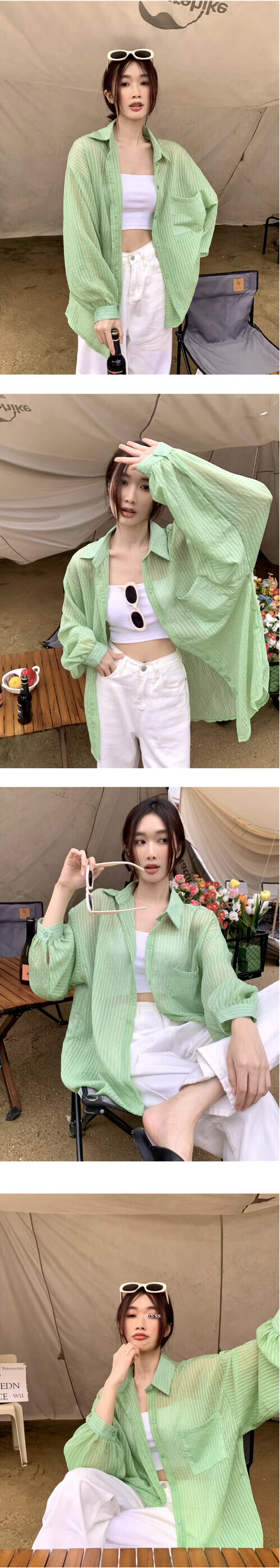 熱賣夏季薄款微透襯衣(白色)【尺碼:S-L】【下單後聯絡客服確認發貨尺碼】