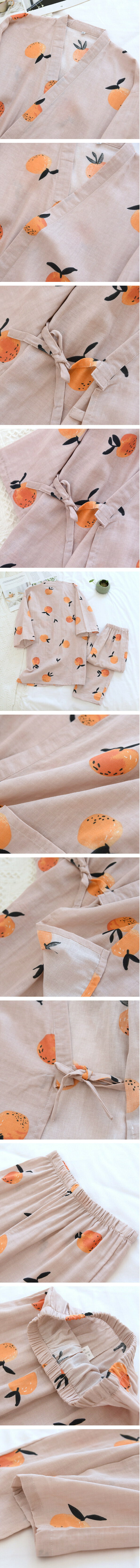 熱賣夏季薄款七分袖和服睡衣(LH暗粉柑橘)【M-XL碼】【下單後聯絡客服確認發貨尺碼】