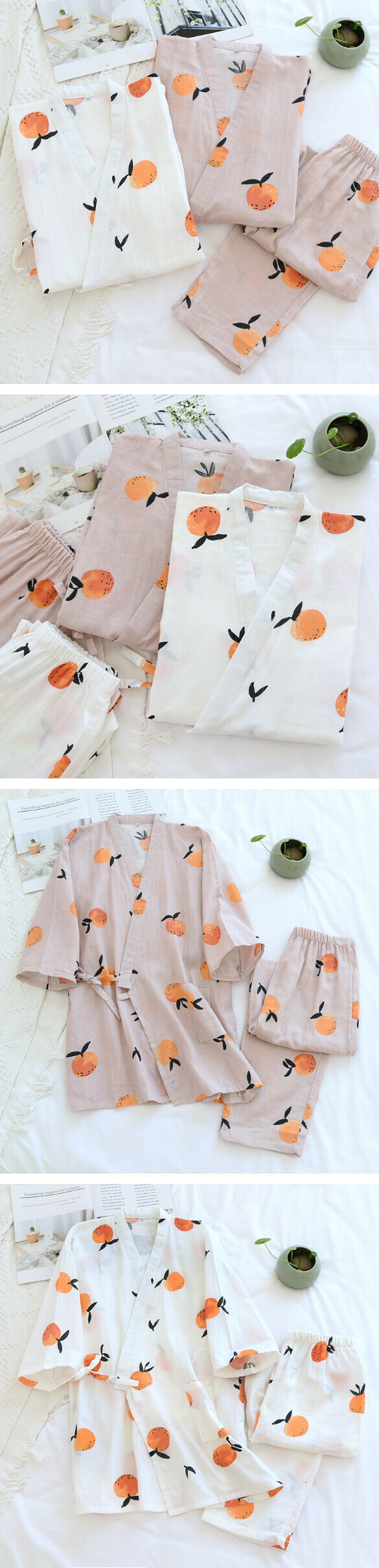 熱賣夏季薄款七分袖和服睡衣(LH白色柑橘)【M-XL碼】【下單後聯絡客服確認發貨尺碼】