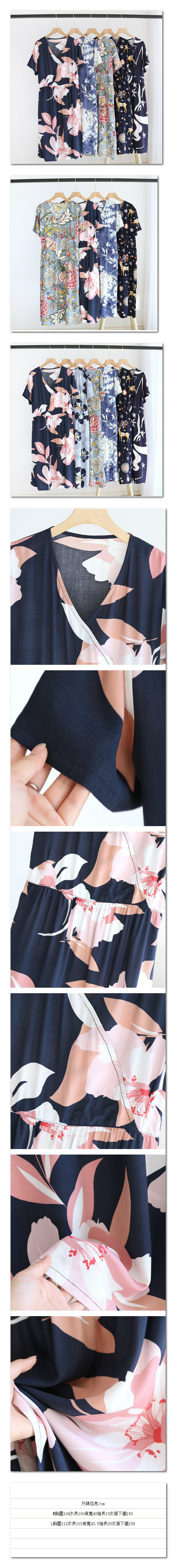 新款夏季V領人棉花卉短袖睡裙(HMM梅花鹿)【M-L碼】【下單後聯絡客服確認發貨尺碼】