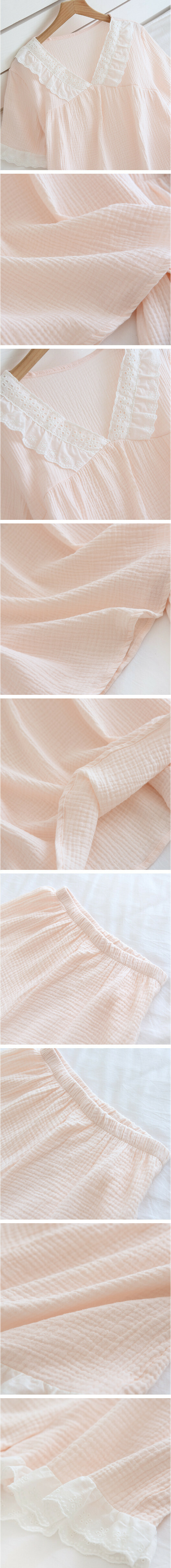 爆款夏季V領蕾絲縐布短褲短袖睡衣套裝(LH白色)【M-XL碼】【下單後聯絡客服確認發貨尺碼】