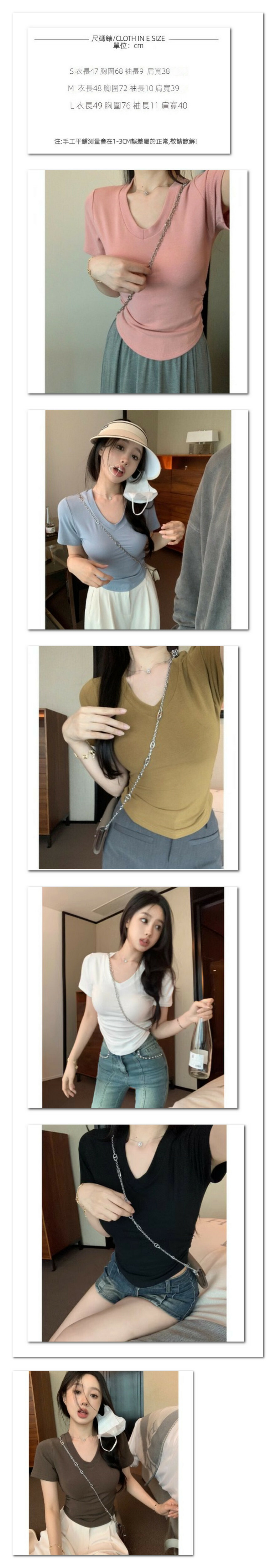 夏季V領正肩短袖T卹(鹹菜綠)【尺碼:S-L】【下單後聯絡客服確認發貨尺碼】