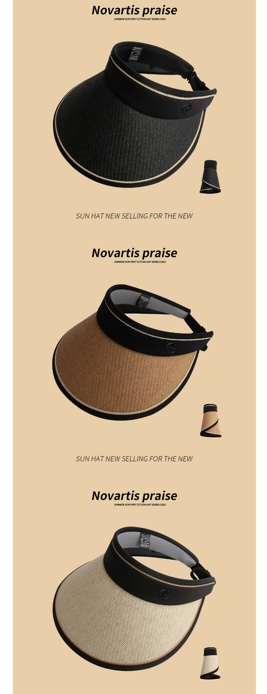 熱推防曬可摺疊太陽帽(D-207CHT米色黑膠(普通))