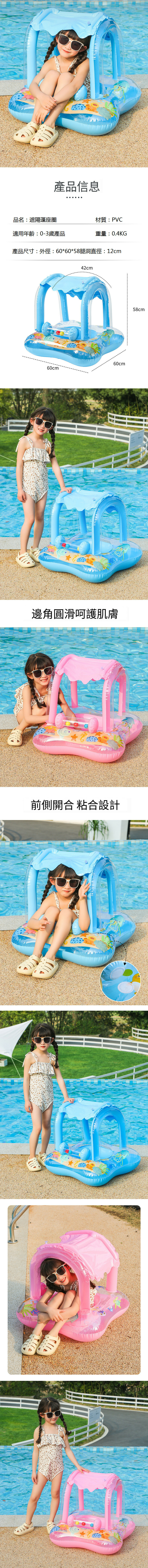 激抵遮陽座艇充氣坐圈游泳圈【遮陽艇粉色(鈴鐺款)】