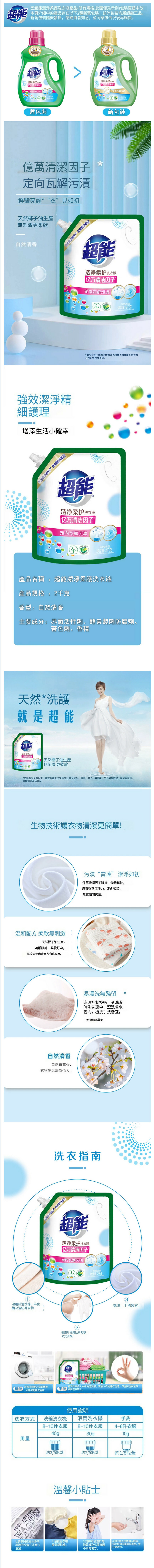 超能--潔淨柔護洗衣液【持久留香】2kg瓶裝+2kg包裝=共4kg