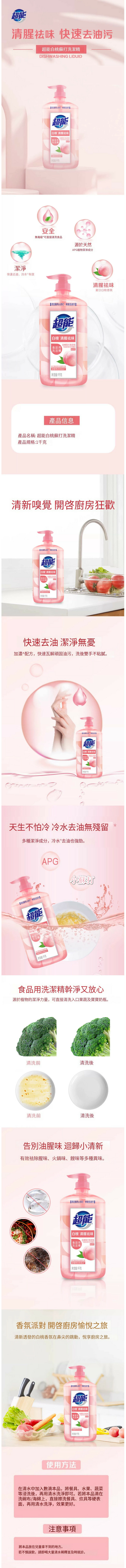 超能--西柚祛腥洗潔精【白桃蘇打香】1kgx1瓶裝