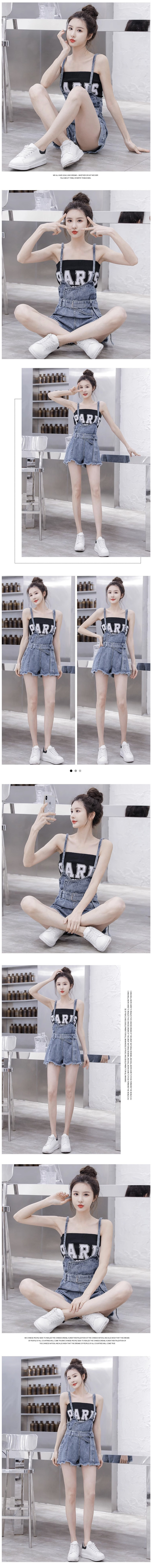 新款吊帶牛仔背帶褲+字母印花抹胸兩件套(背帶褲白套裝)(碼數:S/M/L/XL)(下單後聯絡客服確認尺碼)