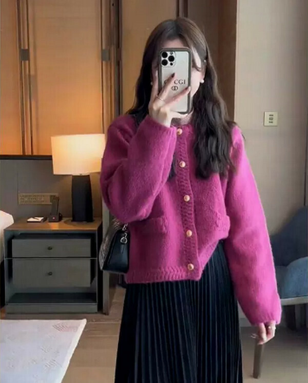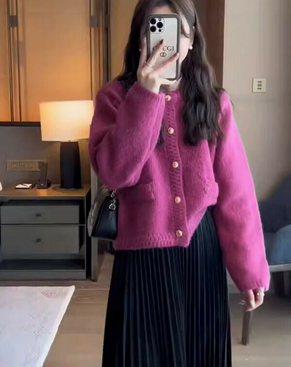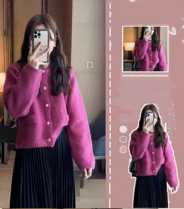 熱推毛衣針織開衫外套#單件(粉紫色)【M-4XL碼】【下單後聯系客服確認尺碼】】