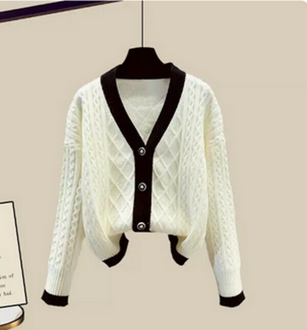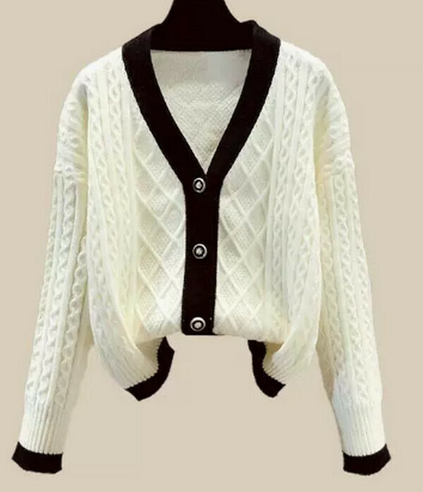 熱推毛衣針織開衫#單件(白色)【M-4XL碼】【下單後聯系客服確認尺碼】】