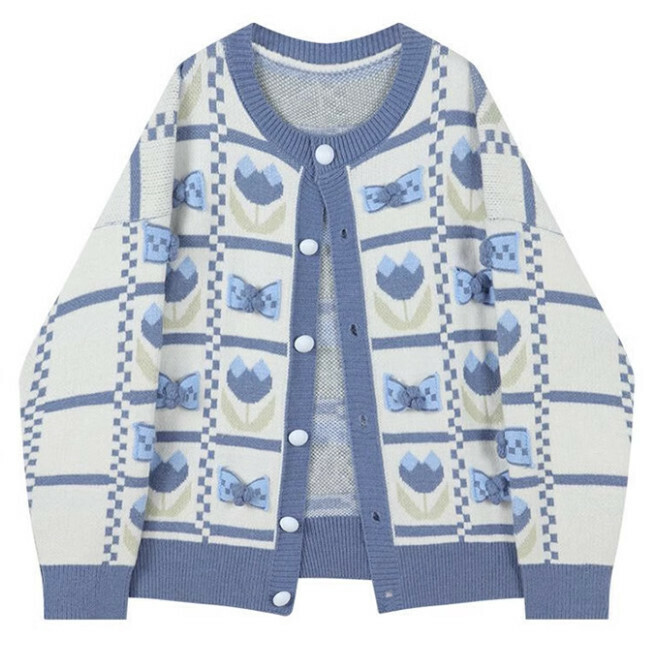甜美慵懶風軟糯毛衣開衫女復古潮减齡蝴蝶結針織外套