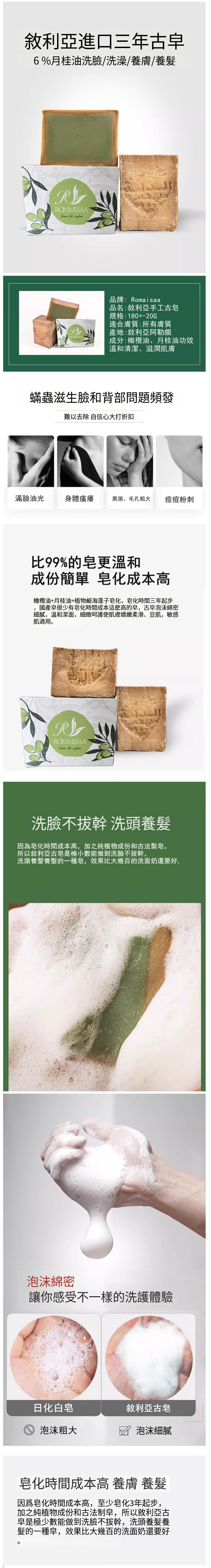 敘利亞--進口手工古皂月桂橄欖油溫和滋潤卸妝潔面沐浴香皂【五年古皂】x1塊裝