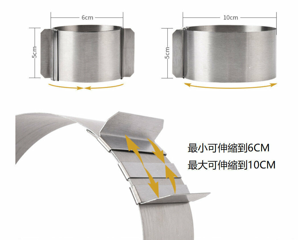 熱賣伸縮4寸小型不鏽鋼圓形可調節慕斯圈 蛋糕烘焙模具 不鏽鋼圓形可調節慕斯圈【規格6-10cm, 5cmH】