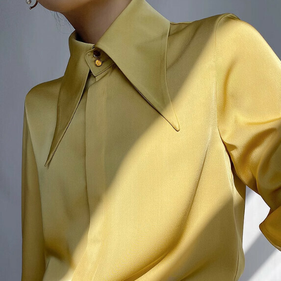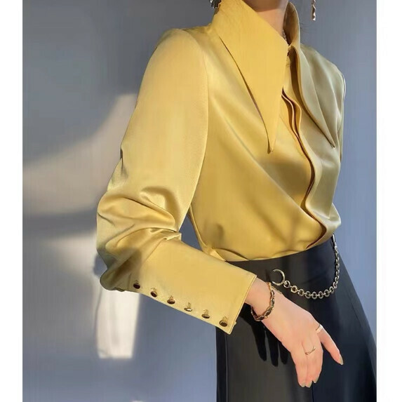 新款氣質大尖領長袖襯衫女春秋(黃色【S_L碼】(下單後聯繫客服確認發貨尺碼)】