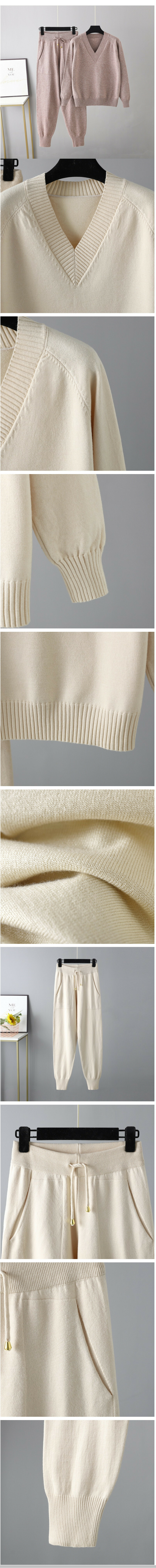 熱推氣質休閒針織毛衣套裝(均碼 上衣+褲子 灰色)