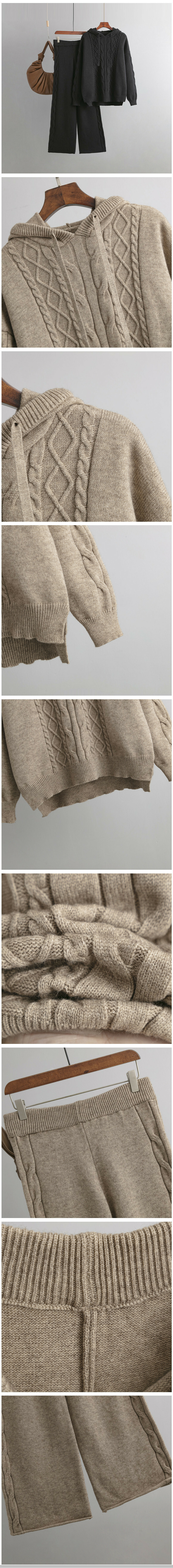 爆款氣質休閒針織毛衣套裝(均碼 上衣+褲子 粉紅色)