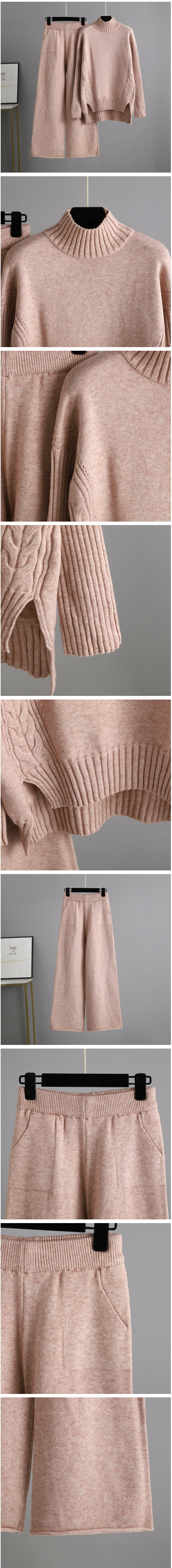激抵氣質休閒針織毛衣套裝(均碼 上衣+褲子 粉色)