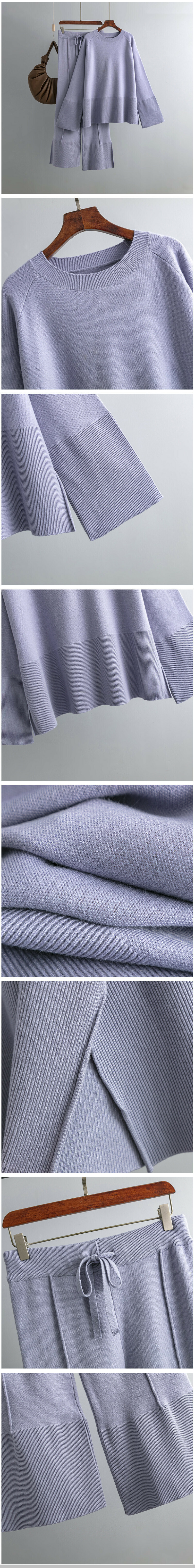 激抵氣質休閒針織毛衣套裝(均碼 上衣+褲子 灰紫)