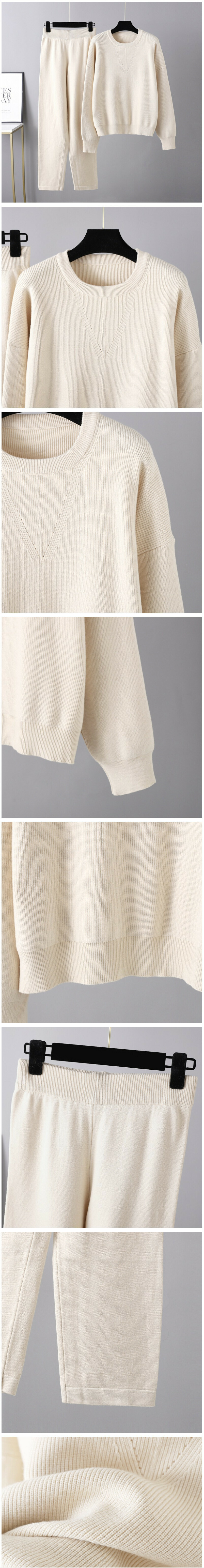 熱賣氣質休閒針織毛衣套裝(均碼 上衣+褲子 卡其色)