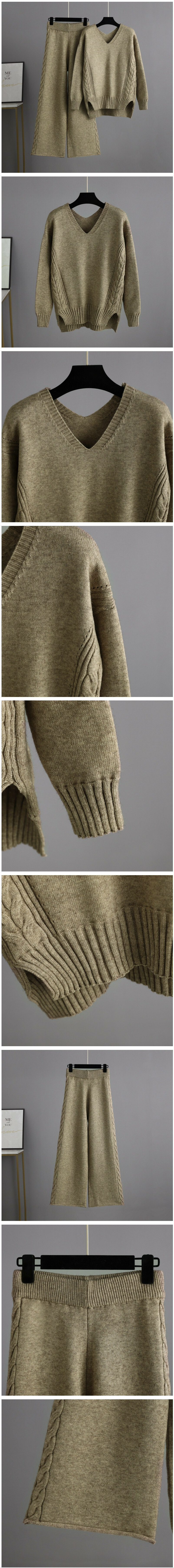 熱推氣質休閒針織毛衣套裝(均碼 上衣+褲子 花紫色)
