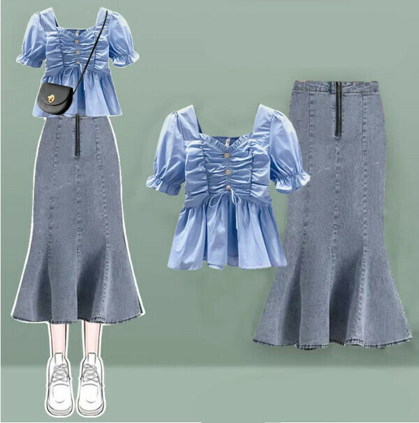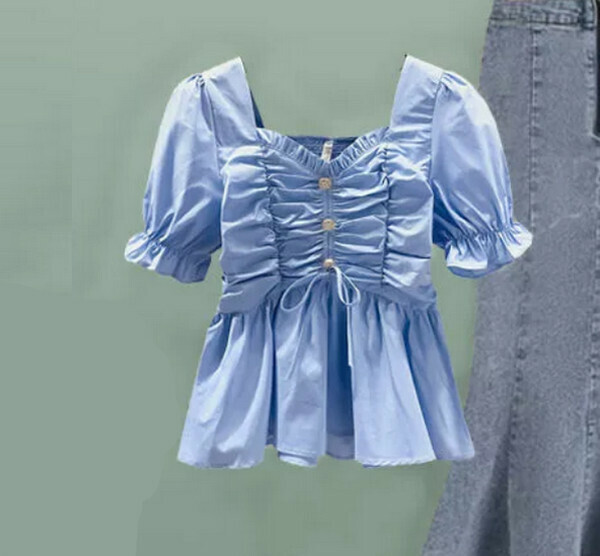新款氣質方領顯瘦上衣-單件(藍色)(M-4XL碼) (下單後聯系客服確認尺碼)