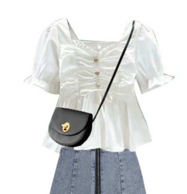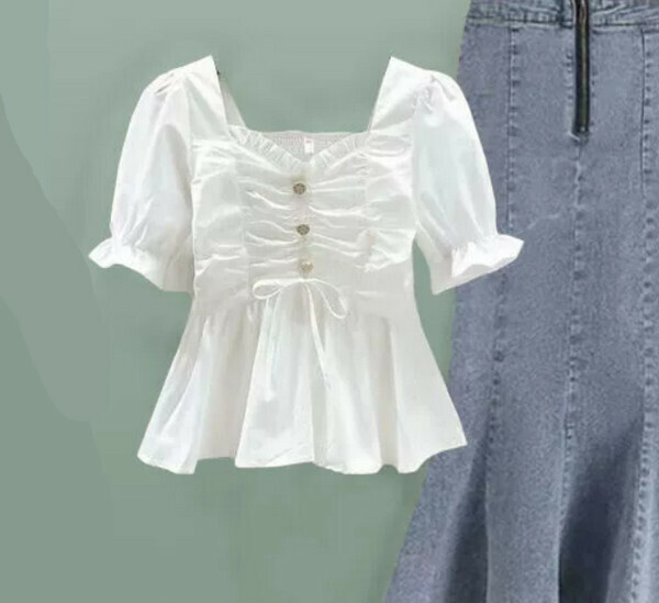 新款氣質方領顯瘦上衣-單件(白色)(M-4XL碼) (下單後聯系客服確認尺碼)