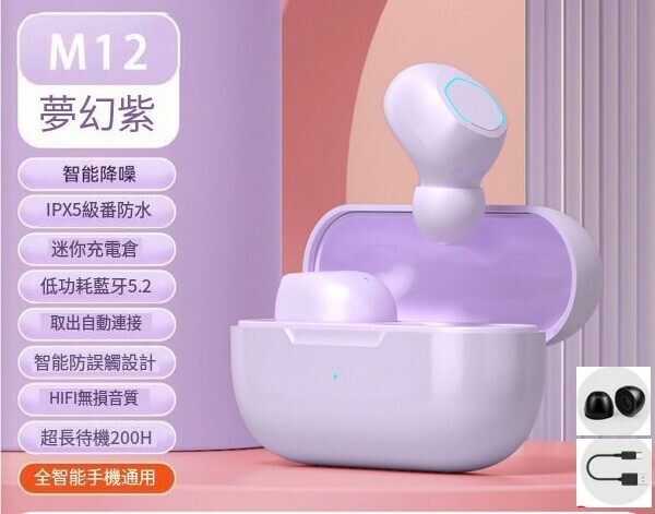 爆款迷你無線藍牙耳機--m12夢幻紫