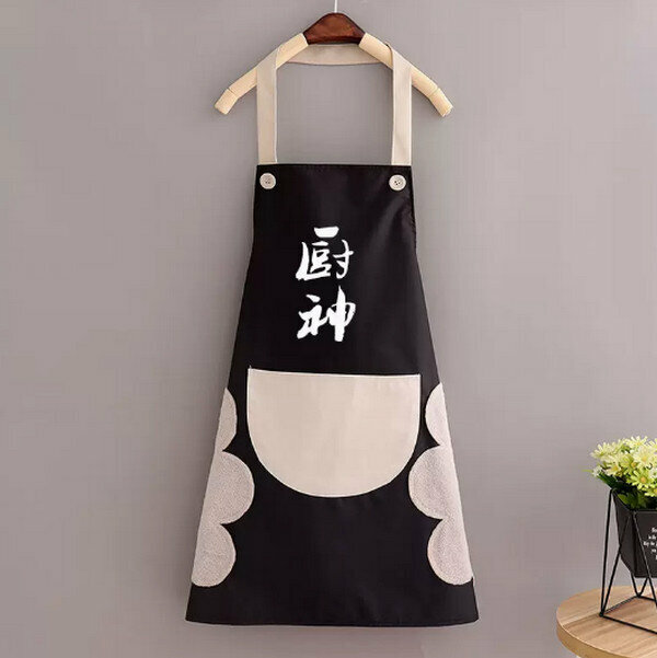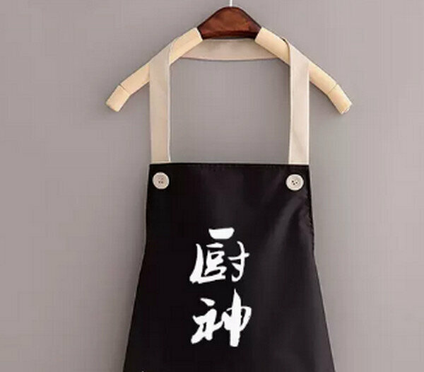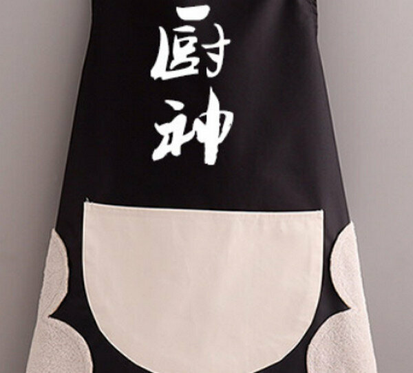爆款時尚防油圍裙-擦手防水掛脖黑配灰書法廚神